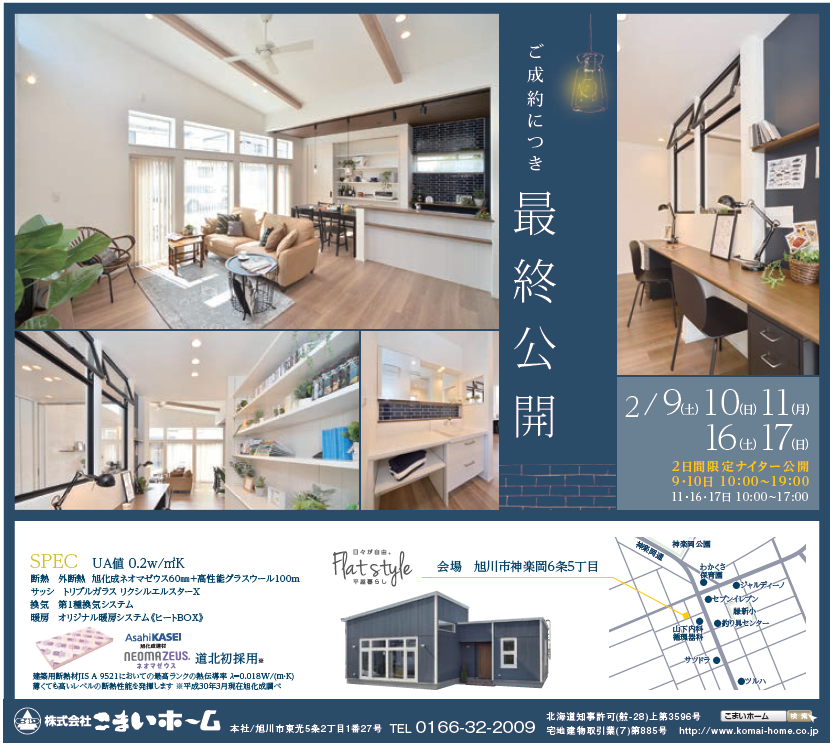 2018年春より公開をしておりました神楽岡モデルハウスのご成約を頂きまして、2/17㈰を持ちまして、公開終了の運びとなりました。
