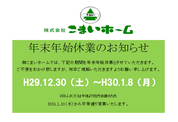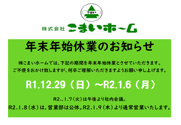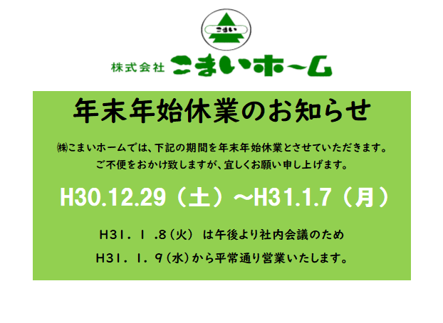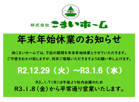 ・年末年始休業のお知らせです。どうぞ宜しくお願い申し上げます。