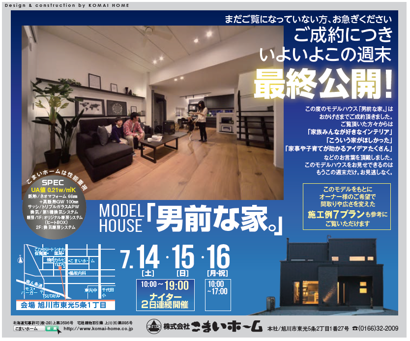 ・東光モデルハウス『男前な家。』ご成約につき、7月末までの公開となります。