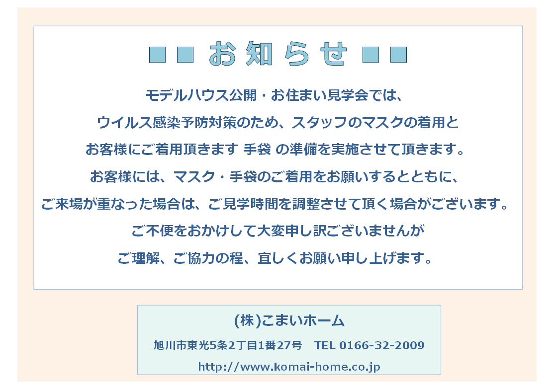 今週末の豊岡・神楽岡 両モデルハウス公開につきましては、ご予約・お問合せでのご案内とさせて頂きます。